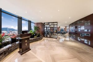 تتميز جميع الغرف بوجود نافذة ممتدة من الأرض حتى السقف مع إطلالة واسعة على المدينة، وقد تم تجهيز جميع الوحدات بأرضيات مفروشة بالسجاد، وتشتمل على تلفزيون بشاشة مسطحة مع قنوات الكابل وثلاجة وخزنة في الغرفة ومنطقة جلوس ومكتب للعمل، يشتمل الحمام الداخلي على أردية حمام ناعمة ودش مطري.