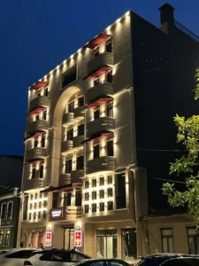 يُقدّم فندق لاندمارك في باتومي غرفًا عائلية مُكيّفة، مع شرفات وحمامات خاصة. تحتوي كل غرفة على آلة لتحضير الشاي والقهوة، ولوازم استحمام مجانية، ومكتب عمل. المرافق الأساسية: يستمتع النزلاء بخدمة الواي فاي المجانية، ومكتب استقبال يعمل على مدار الساعة، وخدمة الكونسيرج، وسوبر ماركت صغير. تشمل المرافق الإضافية بوفيه إفطار مناسب للأطفال، وصالون تجميل، وخدمة تنظيف الغرف اليومية. خيارات الطعام: يُقدّم بوفيه إفطار كل صباح. كما يضم الفندق بارًا يوفر مساحة مريحة للنزلاء. موقع متميز: يقع الفندق على بُعد 6 كيلومترات من مطار باتومي الدولي، وعلى بُعد مسافة قصيرة سيرًا على الأقدام من شاطئ باتومي (13 دقيقة) ومتحف باتومي الأثري (4 دقائق). تشمل المعالم السياحية القريبة نصب علي ونينو التذكاري (1.9 كيلومتر) وساحة أوروبا (14 دقيقة). كما توجد حلبة للتزلج على الجليد في الجوار.