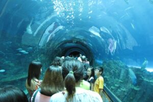 يحتوي المركز على العديد من انواع الأسماك المختلفة والمتنوعة والغريبة مثل سراطين البحر وثعابين البحر وأسماك القرش والأسماك الملونة والشعب المرجانية وغيرها من المخلوقات البحرية الأخرى تقام العديد من الأنشطة الممتعة في المركز مثل عروض الدلافين المُذهلة والجميلة جداً، والاستمتاع برفقة الأطفال بمشاهدة الاسماك واشكالها المتنوعة والتقاط أجمل الصور التذكارية للأطفال. تحيط الأشجار الرائعة الخضراء بالمكان والذي يبعث النشاط للتنزه والاستمتاع بالأجواء الرائعة.
