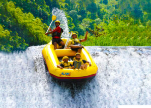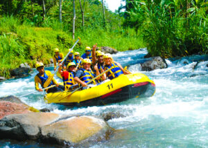 رحلة التجديف بالي تتم بواسطة قارب يتسع ل 4 اشخاص وتستغرق الرحلة الى مركز التجديف حوالي ساعتين ونصف إذا كانت بدون توقف. الطريق الى النهر يتزين بالحقول الخضراء والمزارع. تستغرق رحلة التجديف تقريبا 3 ساعات وهي من أفضل الأنشطة التي يمكن القيام به في بالي.