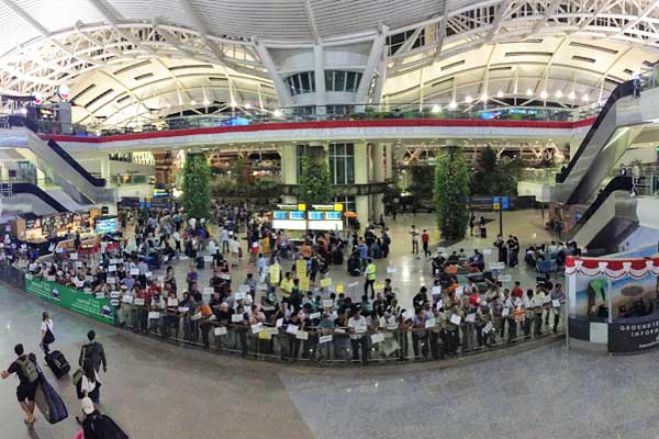 عند الوصول الى المطار بالسلامة من أي مدينة من مدن اندونيسيا المُختلفة لا توجد الكثير من الإجراءات وانما فقط بعد النزول من الطائرة والتوجه لأخذ الأمتعة والعفش الخاص بك ومن ثم المغادرة والتوجه الى الفندق الخاص بكم