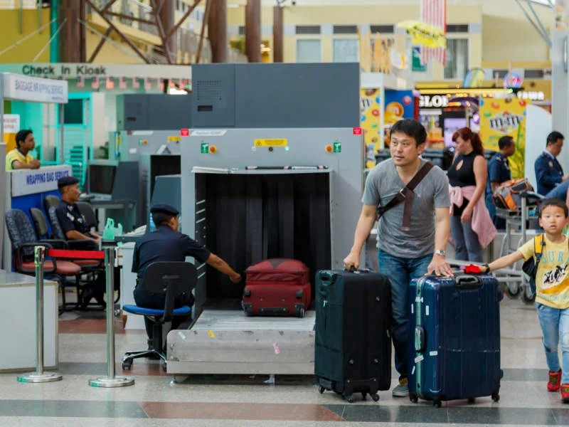 عند الوصول الى المطار عليك التوجه الى القسم الخاص بالعفش والأمتعة حيث سيتم تفتيش الامتعة الخاصة بكم ومن ثم سيتم وزن الامتعة والعفش الخاص بك.